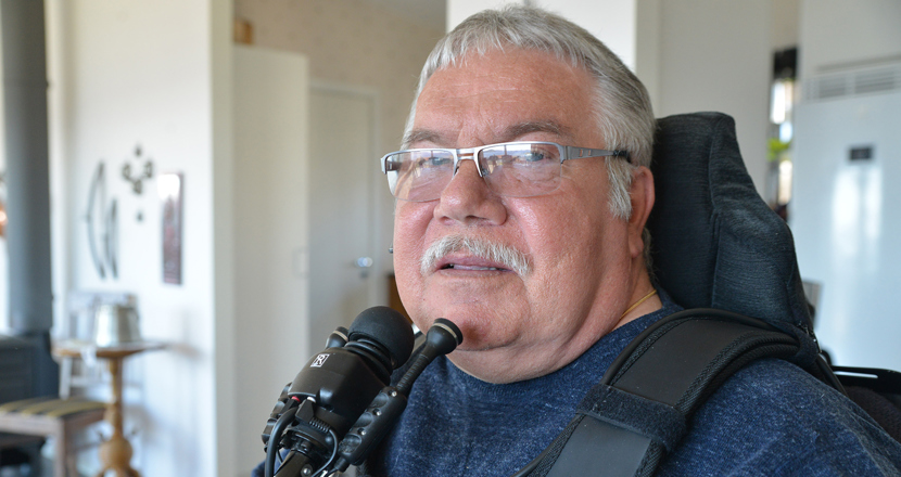 Personlig assistens all vaken tid är nödvändig och tack vare assistansen fungerar han som coach till många andra i Neuroförbundets lokalförening. Med sin erfarenhet och envishet hjälper han till där det behövs.