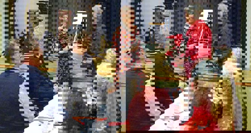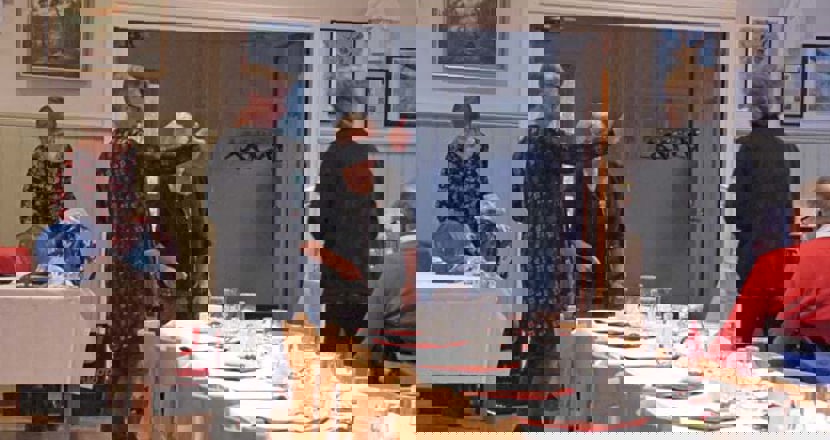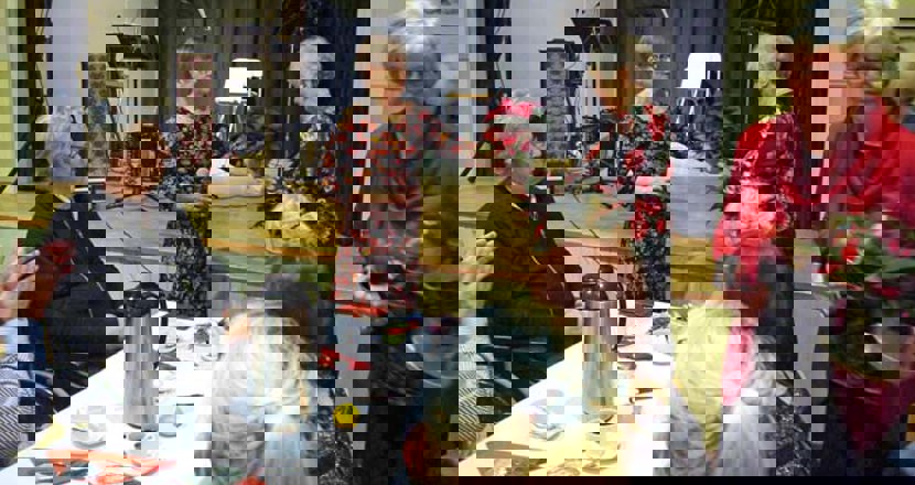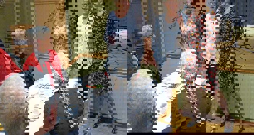 Eva avtackade kökspersonalen, de var lika fantastiska som vanligt. Naturligtvis fick de blommor och applåder. Eva passade även på att överlämna blommor som ett litet tack till de som skött köket på Örbygården under våra aktiviteter under året.
