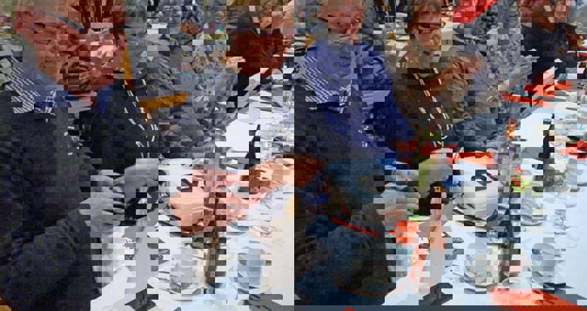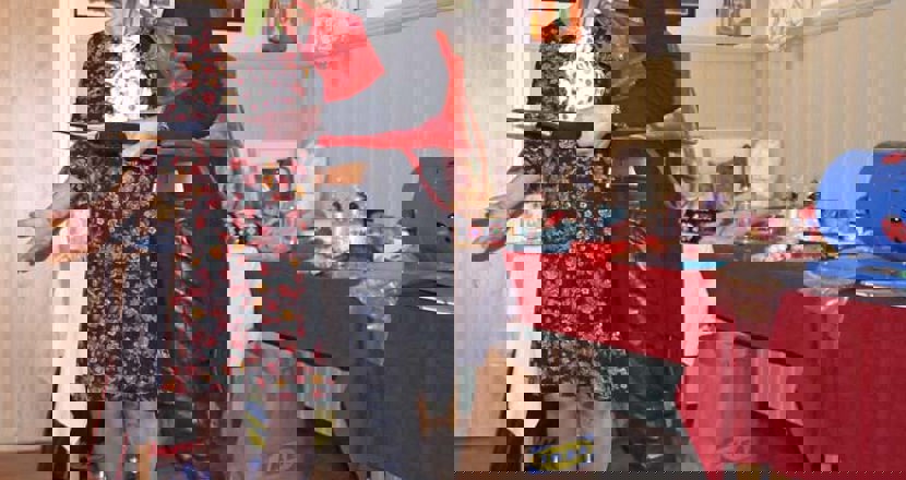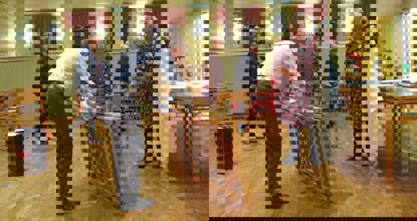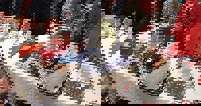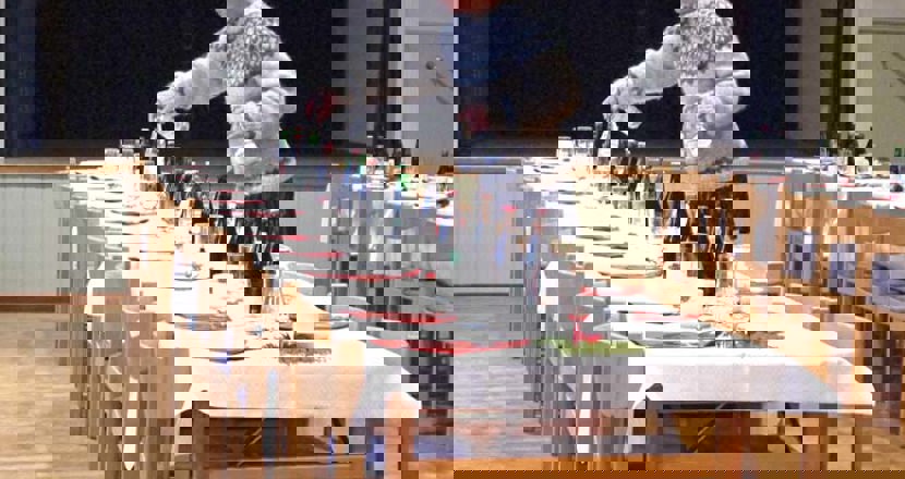 När alla bord och stolar var framme var det dags för dukning, nu åkte dukar och porslin fram. Som vanligt dukades det också upp ett bord med många fina vinster.