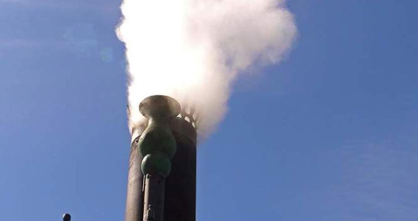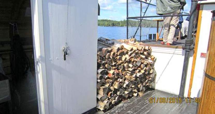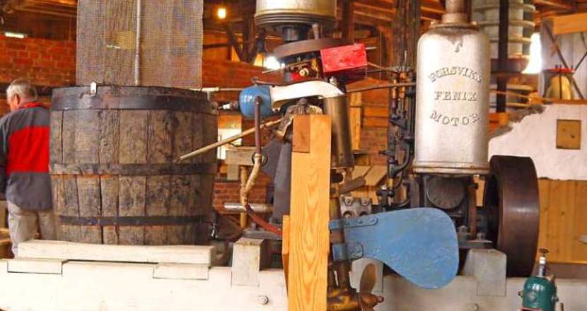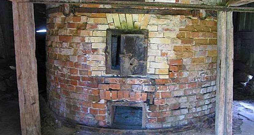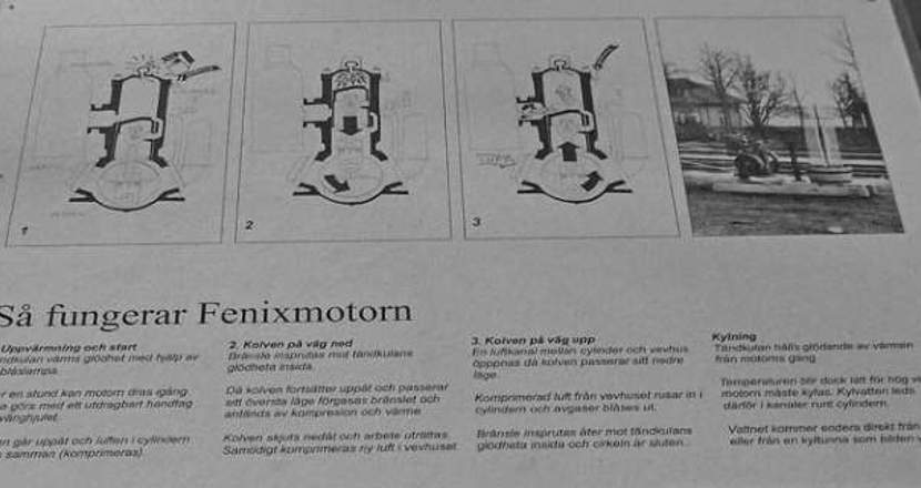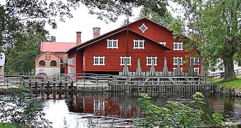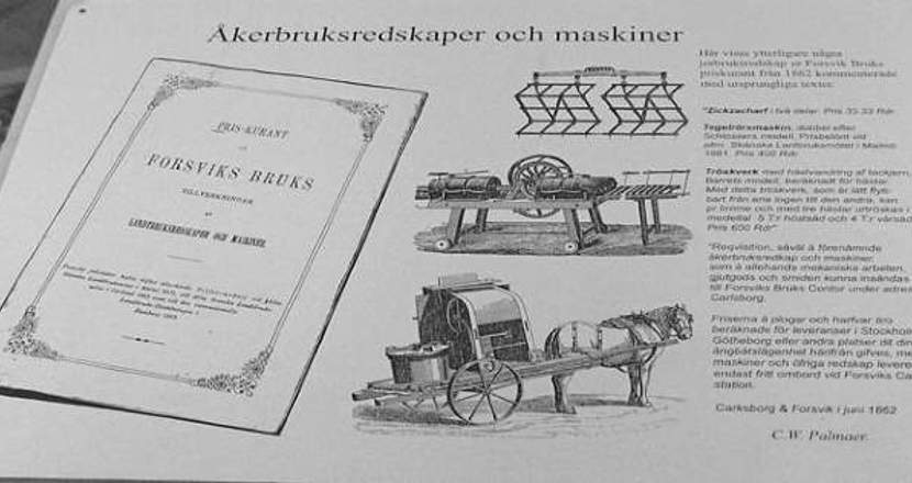 Kalorifären vid Forsviks Bruk. Den heta luften från kalorifären torkade pappersmassan som framställdes i träsliperiet. Kalorifären eldades med ved och hettade upp en värmeväxlare. Remdrivna fläktar förde in hetluften via den svarta tuben till torkugnarna i träsliperiet.