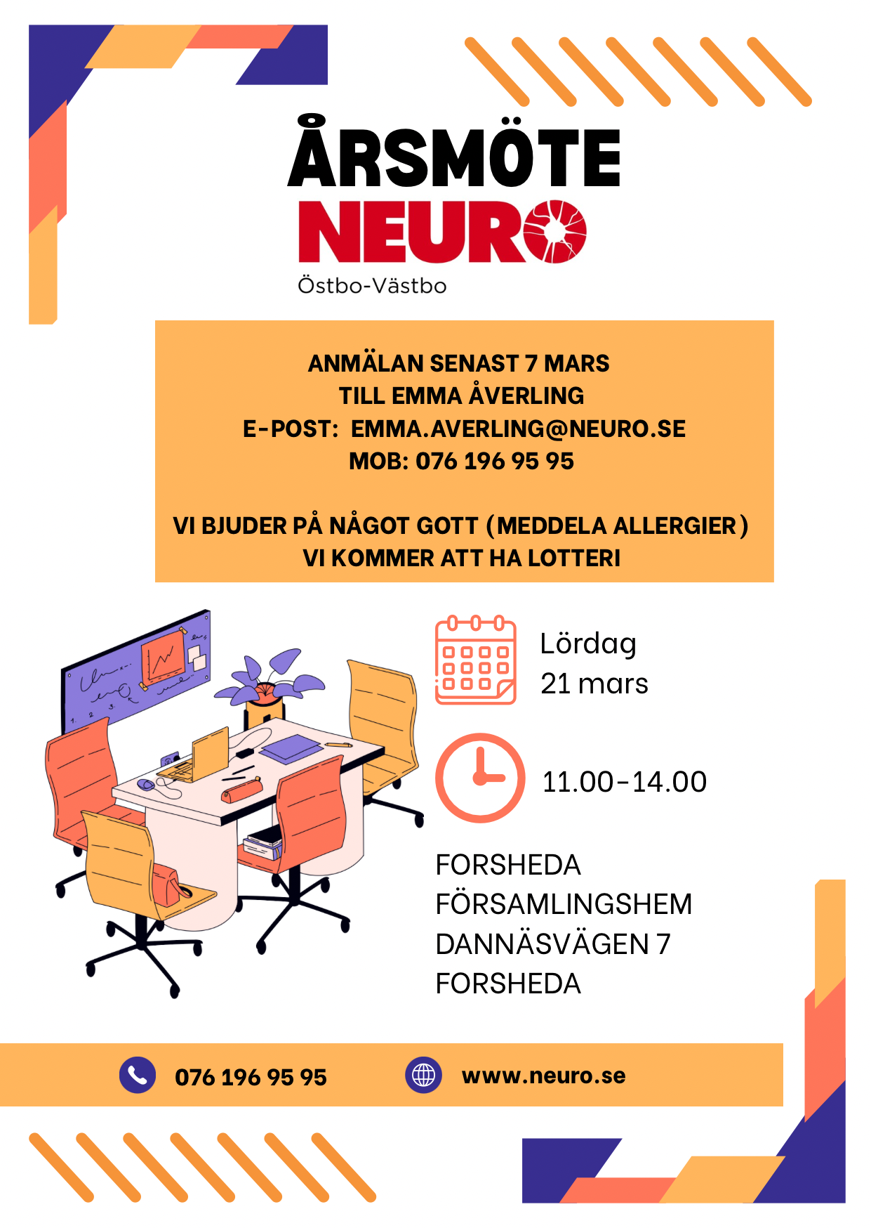 Anmälan: Senast 7 mars till emma.averling@neuro.se eller tel 0761-96 95 95