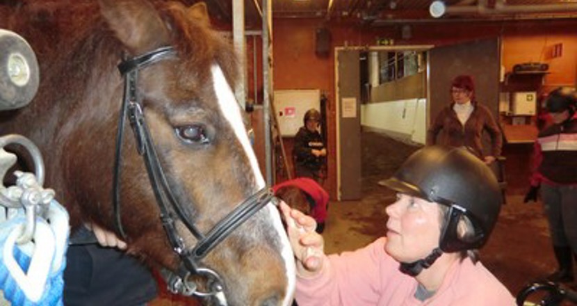 Agneta berättar: "Jag har ridit i ca 8 år vid Kågedalens ryttarförening. Där finns ca. 22 hästar varav 7 av dessa används för personer med funktionsnedsättning. Vi är ca 10-15 st med funktionsnedsättning som rider i olika grupper, varav 3 från NHR Skellefteå. Vår instruktör heter AnnaKarin Lundström.