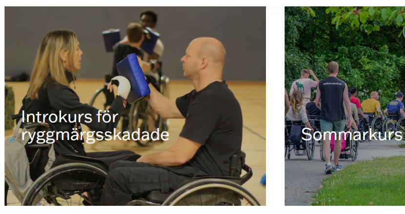 RG Aktiv Rehabilitering erbjuder kurser både för nyskadade personer och för dem som varit skadade längre. På kurserna ligger fokus på erfarenhetsutbyte och inspiration till träning för ökad självständighet.