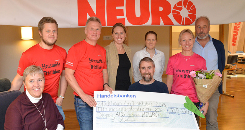 För sjätte året i rad arrangerades Hensmåla Triathlon i juli 2018. Tävlingen är skapad av familjen Arnesson i Hensmåla och målet med den är att allt överskott ska gå till forskning kring den svåra neurologiska diagnosen als, amyotrofisk lateralskleros. I år blev överskottet 125 000 kronor och summan har nu levererats till Neurofonden, för att sedan slussas vidare till det nya kliniska als-forskningscentret för alla als-patienter i landet, på Karolinska sjukhuset.