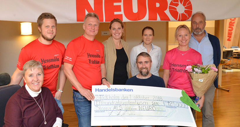 För sjätte året i rad arrangerades Hensmåla Triathlon i juli 2018. Tävlingen är skapad av familjen Arnesson i Hensmåla och målet med den är att allt överskott ska gå till forskning kring den svåra neurologiska diagnosen als, amyotrofisk lateralskleros. I år blev överskottet 125 000 kronor och summan har nu levererats till Neurofonden, för att sedan slussas vidare till det nya kliniska als-forskningscentret för alla als-patienter i landet, på Karolinska sjukhuset.