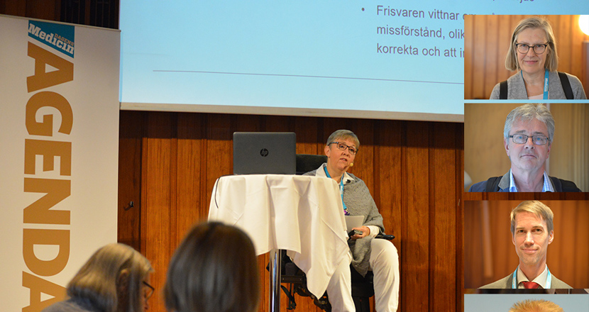 Lise Lidbäck, Neuros ordförande var patientrepresentant och berättade för sjukvårdspersonal och politiker om villkoren att leva med en neurologisk diagnos. Neurologerna i detta Neuropoddsreportage är uppifrån sett; Ulla Lindbom, Jan Lycke, Dag Nyholm och Johan Bengzon. Foto: Håkan Sjunnesson / Neuro
