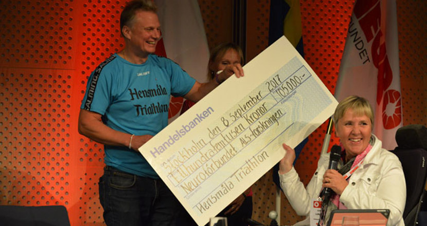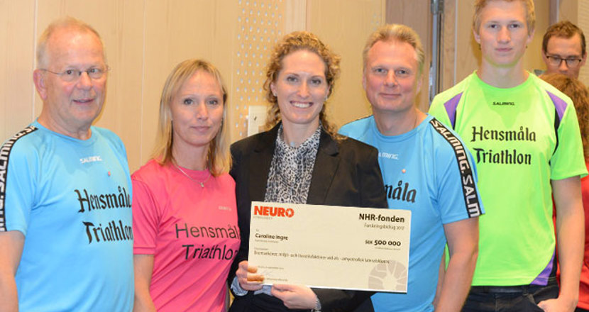 Under Neuroförbundets kongress 2017 närvarade ett arrangörsteam från Hensmåla triathlon som fick äran att dela ut 500 000 kronor från Neuroförbundets fond (NHR-fonden) till den als-forskning som neurologen Caroline Ingre på KI ansvarar för.