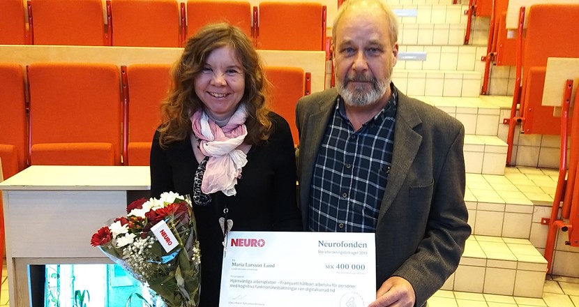 Att skapa så hjärnvänliga arbetsplatser som möjligt för alla som har kognitiva funktionsnedsättningar beroende på neurologiska skador. Det forskar Maria Larsson Lund om på Luleå Tekniska universitet. Hon är professor i arbetsterapi och hennes team tilldelades på Nobeldagen 2019, 400 000 kronor från Neurofonden genom förbundet Neuro.