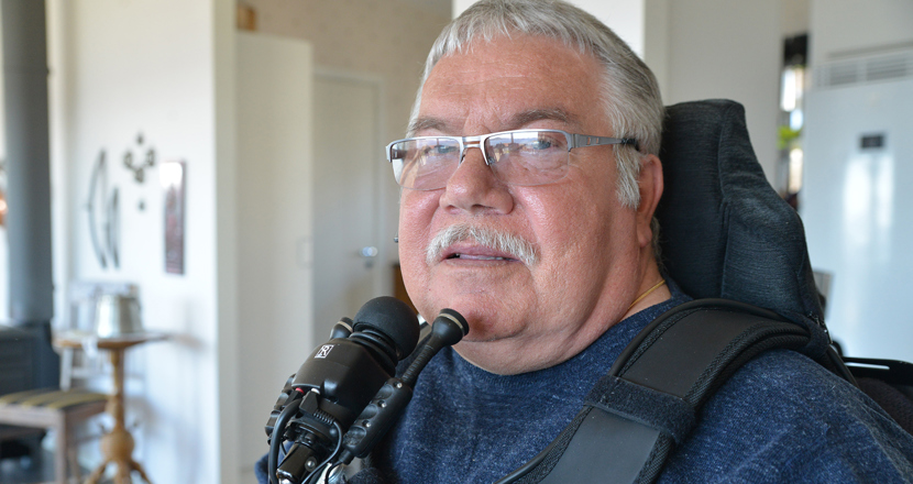 Personlig assistens all vaken tid är nödvändig och tack vare assistansen fungerar han som coach till många andra i Neuroförbundets lokalförening. Med sin erfarenhet och envishet hjälper han till där det behövs.
