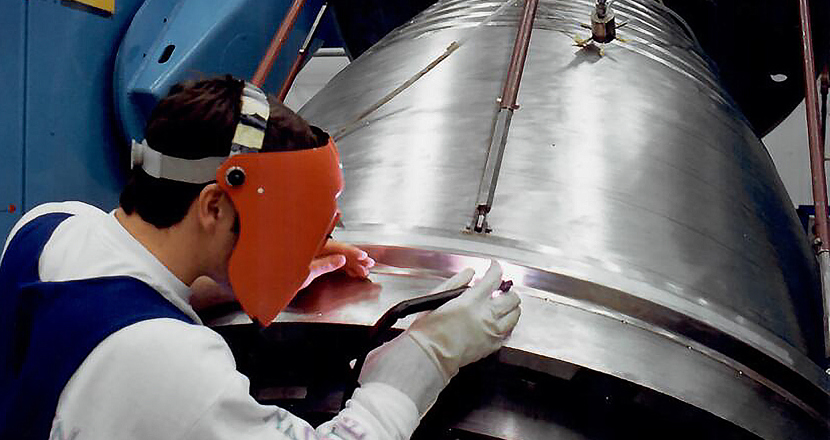 När Sverige år 1973 gick med i det europeiska rymdprogrammet med Arianeraketer, var industriutbytet viktigt för ett svenskt deltagande. Volvo Aero tillverkade brännkammare och munstycken till raketerna som placerade ut många viktiga satelliter. Här utför Jens Sahlin skickligt svetsarbete på ett raketmunstycke. Foto: Privat