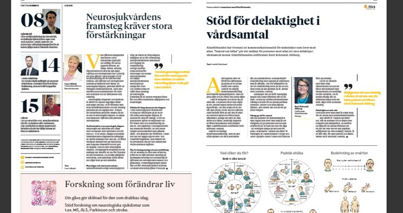 Idag skriver Neuros förbundsordförande Lise Lidbäck ledaren i bilagan om Hjärnan och nervsystemet i SvD.