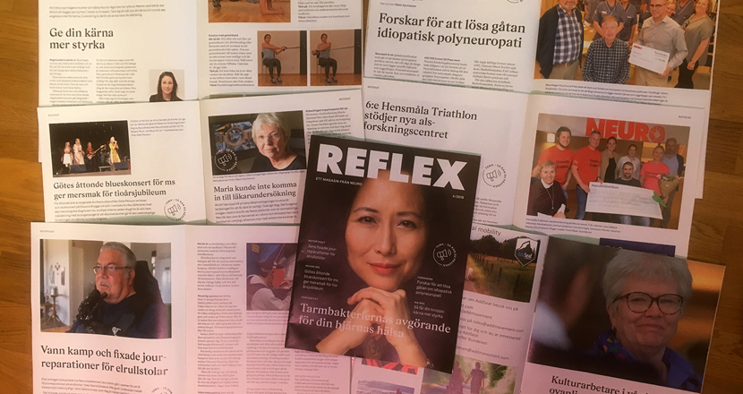 Neuros vällästa medlemstidning Reflex Magasin nummer 4-2018 har nu nått ut till alla läsare runt om i landet. Och det är som vanligt en tidning fylld av intressanta artiklar; om tarmbakteriernas betydelse för hjärnans hälsa, forskning om diagnosen polyneuropati. Dessutom flera artiklar om hur engagerade Neuromedlemmar med kamp lyckats få igenom storverk lokalt på olika sätt.