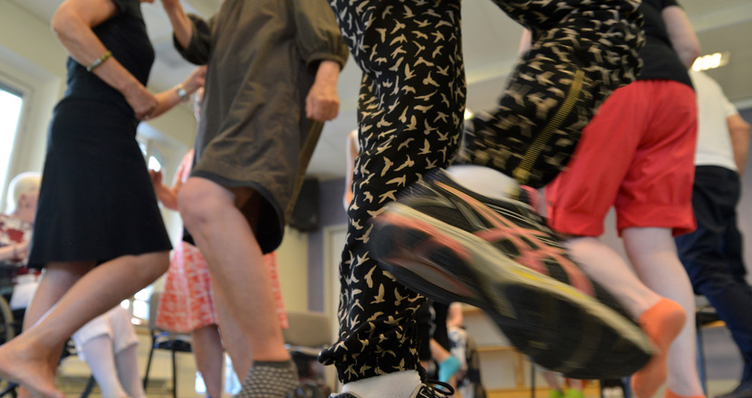 Solen lyser in genom den vackra danssalens höga fönster och på det stora solvarma trägolvet rör sig människor koncentrerat och graciöst. Nyss var det en rytmisk poplåt men nu strömmar klassisk musik ur högtalarna här på neurodansen. Det är både stående och sittande människor, med olika neurologiska diagnoser, som här kan dansa utifrån sin egen förmåga. Allt under ledning av danspedagogerna Åsa N. Åström och Jennifer Johannesson från Balettakademien, som turas om att instruera gruppen. Dansövningarna varierar mycket och det byggs kroppspyramider, man skickar kroppsbudskap till varandra och rör sig över salsgolvet i formationer.
