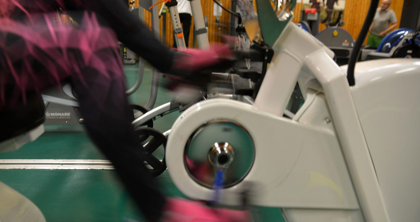 Det cyklas, dansas, balanseras, boxas och dras med ben och armar i olika viktredskap. I en av de moderna roddmaskinerna får man verkligen en vattenkänsla och för stunden är det Mats Eriksson som ror på sitssläden som rullar på en balk. Varje roddtag får skovelhjulet att snurra men det bromsas samtidigt av vattenmotståndet i den täta behållaren. Ljudet av skvalpande vatten är behagligt och tycks sporra Mats, som fortsätter envetet.