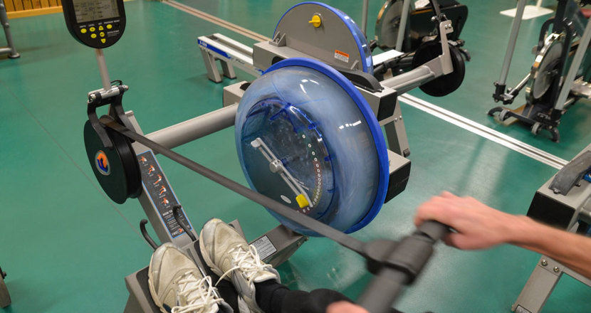 Det cyklas, dansas, balanseras, boxas och dras med ben och armar i olika viktredskap. I en av de moderna roddmaskinerna får man verkligen en vattenkänsla och för stunden är det Mats Eriksson som ror på sitssläden som rullar på en balk. Varje roddtag får skovelhjulet att snurra men det bromsas samtidigt av vattenmotståndet i den täta behållaren. Ljudet av skvalpande vatten är behagligt och tycks sporra Mats, som fortsätter envetet.
