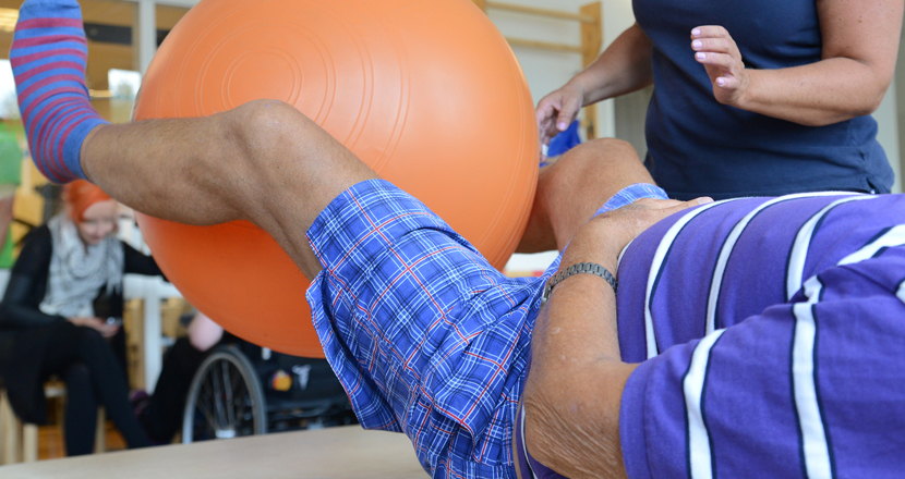 Så här kan en övning gå till vid individuell neurologisk rehabilitering ledd av fysioterapeut. Foto: Håkan Sjunnesson / Neuro