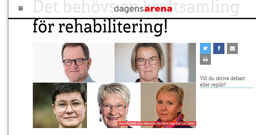 Fem förbunds ordföranden skriver idag en debattartikel om rehabilitering på vällästa opinionswebbplatsen "Dagens Arena". Neuros ordförande Lise Lidbäck är en av dem: