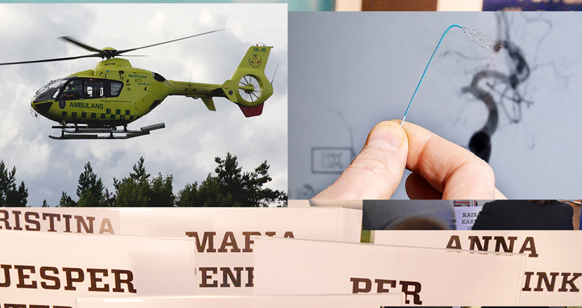 Det är den som får en större blodpropp i hjärnan eller i blodkärl nära hjärnan som kan räddas av en så kallad trombektomi. En lång mikrokateter med en millimeterliten öppningsbar korg i änden, förs upp till det tilltäppta kärlet i hjärnan via ljumsken. Patienten röntgas under tiden så att läkaren ser blodproppen. Med den fjärrstyrda lilla korgen kan blodproppen så fångas in i blodkärlet och dras ut, så att blodet kan flöda fritt igen. Det gör att hjärnan inte hinner ta skada av brist på blodtillförsel.
