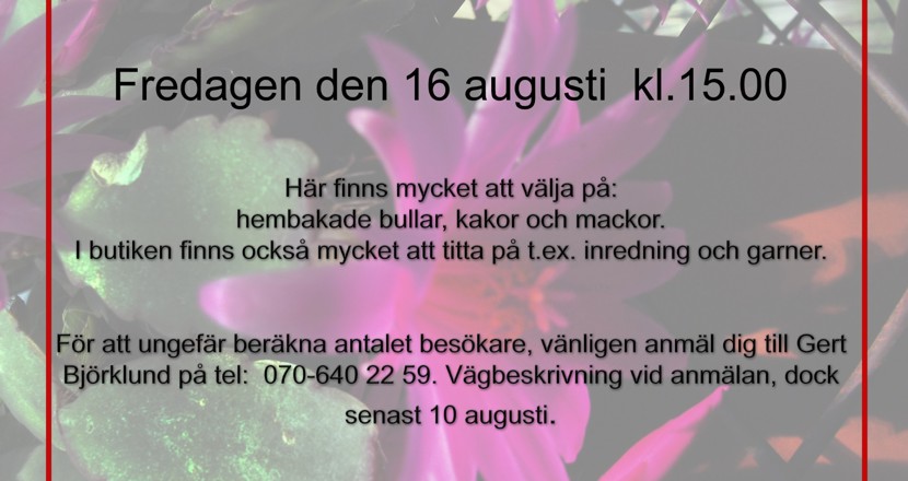 För att ungefär beräkna antalet besökare är det bra om du anmäler dig till Gert Björklund på tel. 0706402259. senast 10 augusti