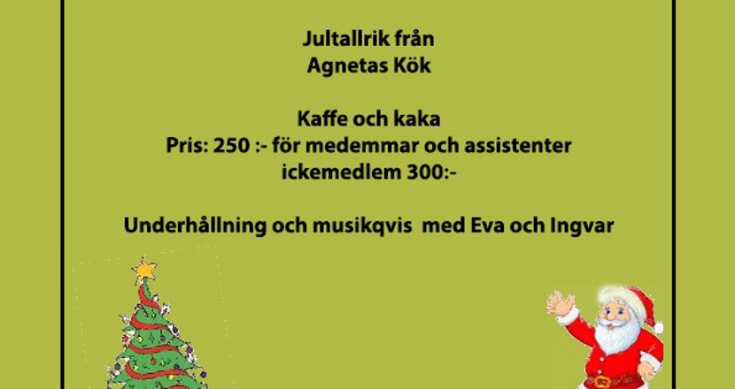 jultallrik från Agnetas kök pris: 250 :- medlemmar och assistenter