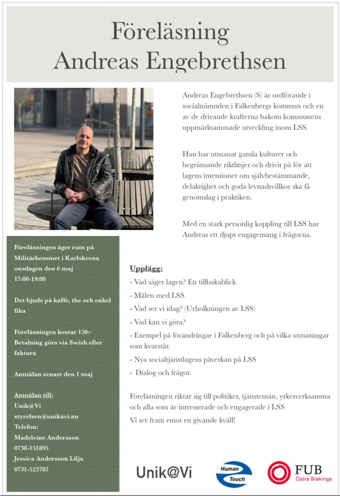 Inbjudan föreläsning Unik@Vi har bjudit in Andreas Engebrethsen från Falkenberg