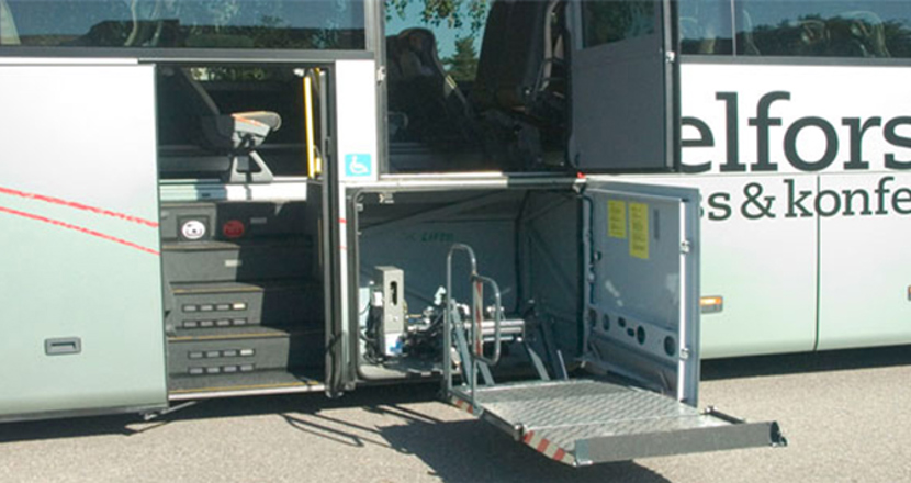 Bussen är byggd för att funktionsnedsatta resenärer skall kunna färdas bekvämt, tryggt och utan hinder under längre resor.