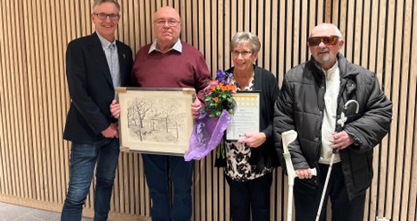 Bilden visar Anders Wikman, ordförande i kommunala tillgänglighetsrådet, vinnarna 2025 Torbjörn och Britt-Marie Bernström samt Jan Wigdell som är initiativtagare till priset.