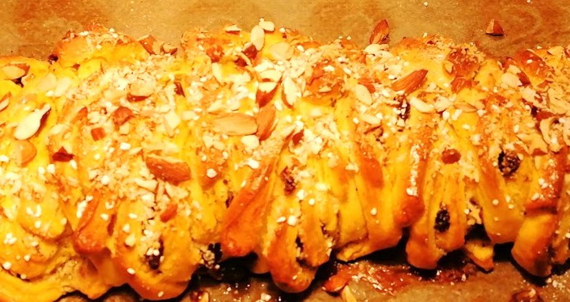 - Pensla med ägg och toppa med pärlsocker och mandelflagor eller det du önskar.