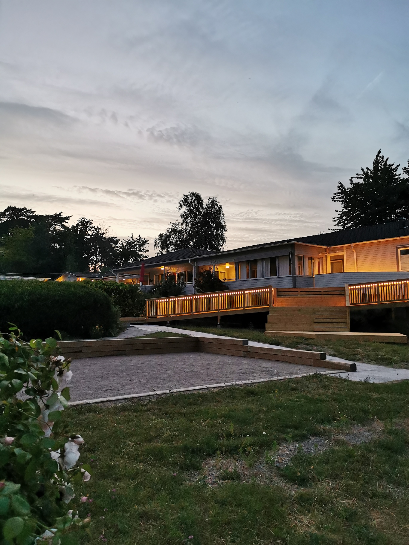 Johns stuga är handikappanpassad och här får du även ta med din hund. Stugan består av ett charmigt rum med glasveranda. Två sängar där den ena är ställbar. Det finns även ett litet kök och ett stort badrum. Denna stuga kan du även hyra utanför högsäsong.