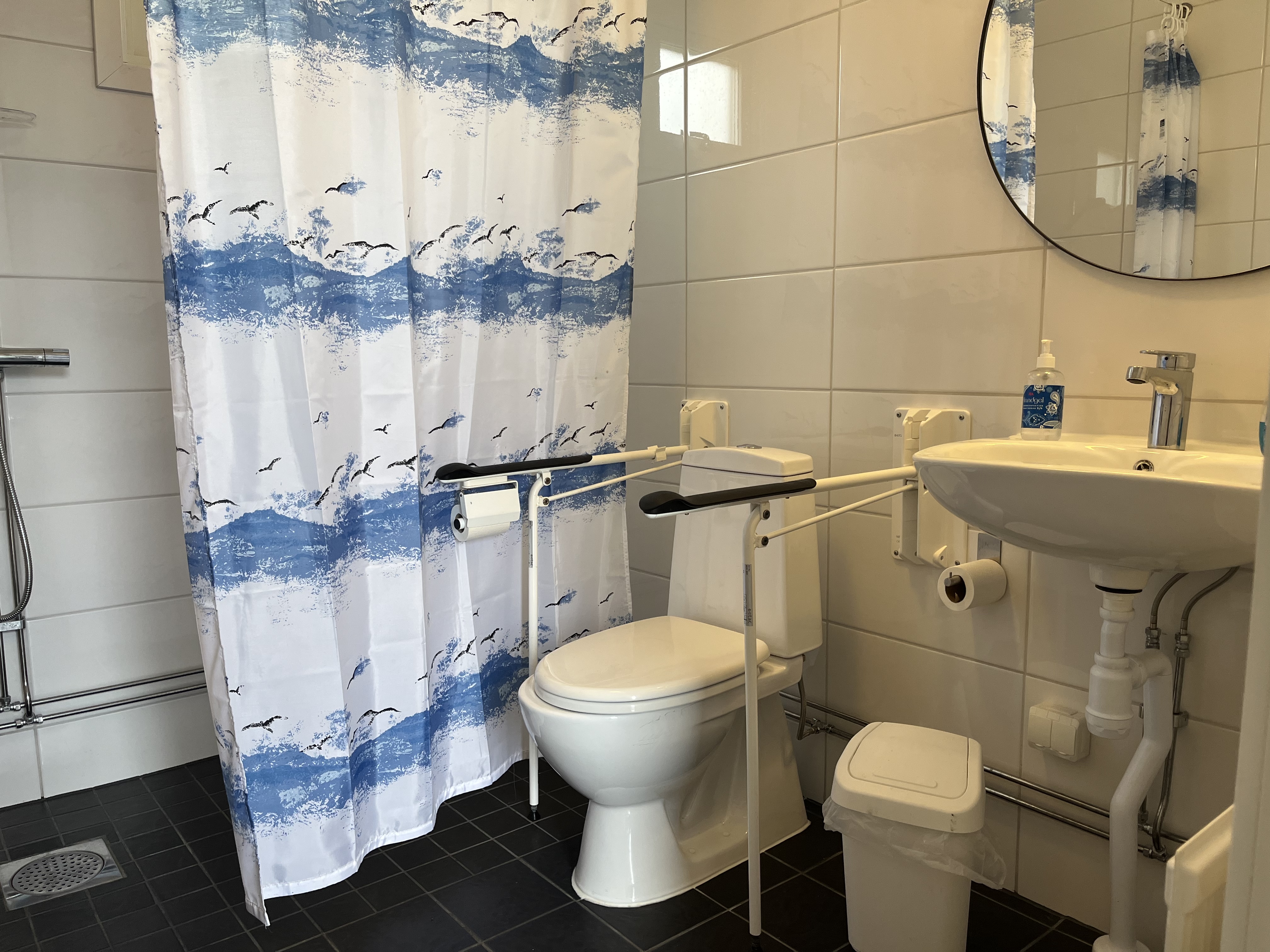 I villan har vi ett dubbelrum på entréplan med ställbara sängar i anslutning finns det stort badrum med dusch och toalett samt en mindre toalett. Tillgång till kök finns också.