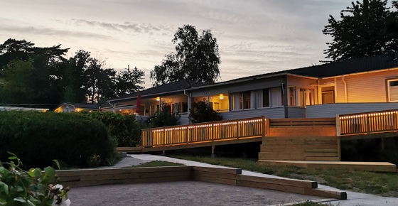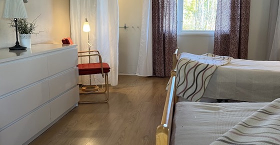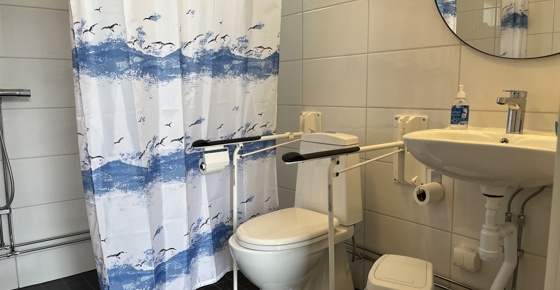 Det finns även ett stort enkelrum i paviljongen direkt i anslutning till bastun och relax där det finns stort badrum med dusch och toalett.