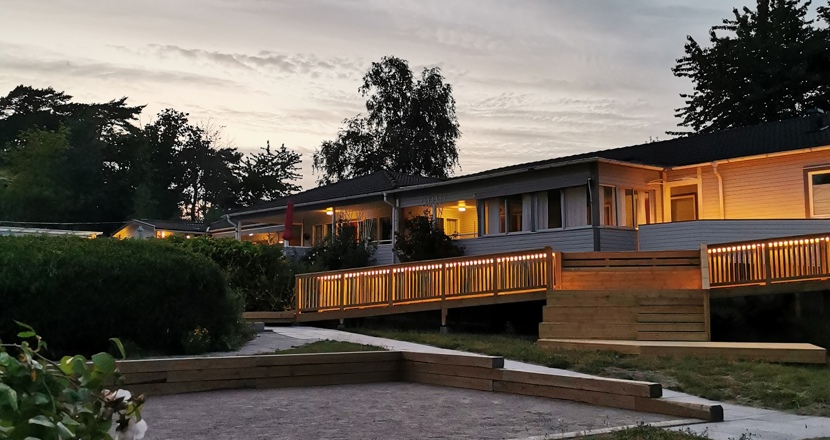 Efter 1,5 km, sväng vänster in på Jojos väg, skylt D&J Strannegården