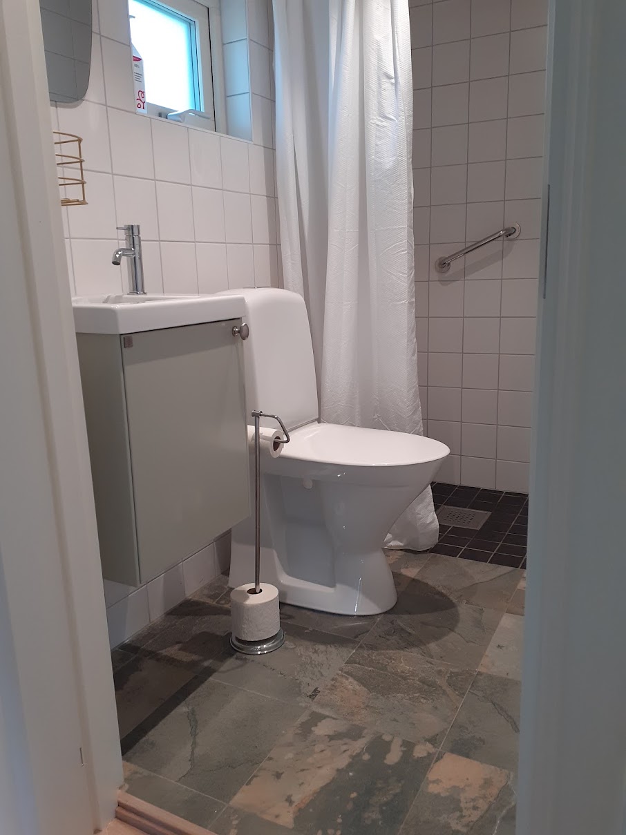 Det finns även ett stort enkelrum i paviljongen direkt i anslutning till bastun och relax där det finns stort badrum med dusch och toalett.
