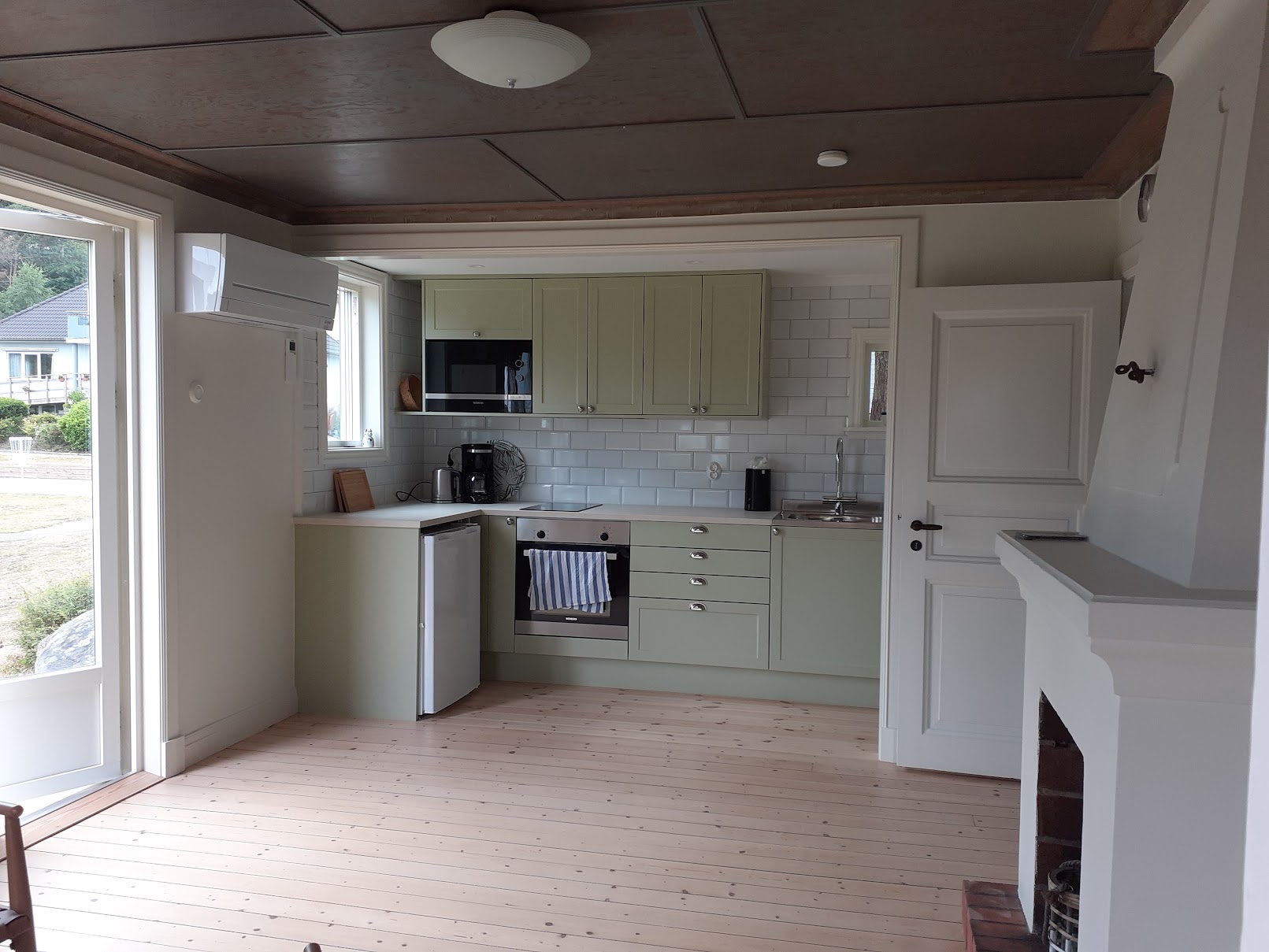 I villan har vi ett dubbelrum på entréplan med ställbara sängar i anslutning finns det stort badrum med dusch och toalett samt en mindre toalett. Tillgång till kök finns också.