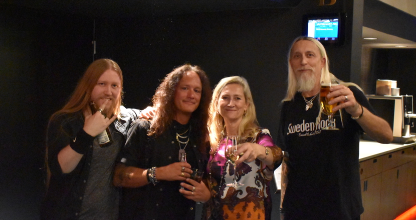 Vi möttes i hotellfoajén av kanslipersonalen. De kontrollerade så att inte några oinbjudna smet in. Därefter blev det bubbel och mingel innan vi fick komma in i den fina festlokalen.