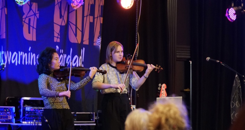 Därefter följde Bruttans Husband som bestod av två tjejer spelandes fiol. Keltisk medryckande och eget komponerad musik.