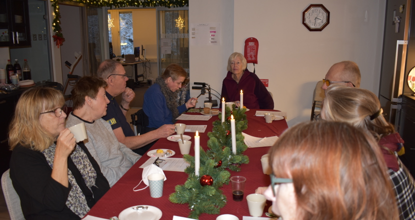 Här kunde man dricka kaffe, julmust och äta lussekatter, pepparkakor och godis medan man pratade med gamla och nya bekanta. I stora rummet visades det bilder från sommaren på Strannegården och Katarina svarade på frågor om man hade några. En medlemsenkät delades ut så medlemmarna kunde önska sig olika aktivitet till kommande år.