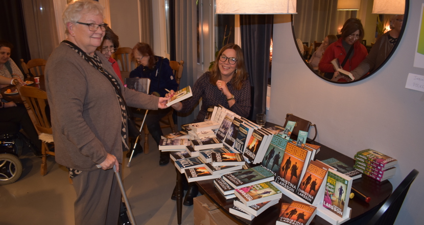 I restaurangen berättade författaren Christina Larsson om sig själv och sina böcker. Ville man kunde man köpa en eller flera böcker, få dom inslagna och signerade.