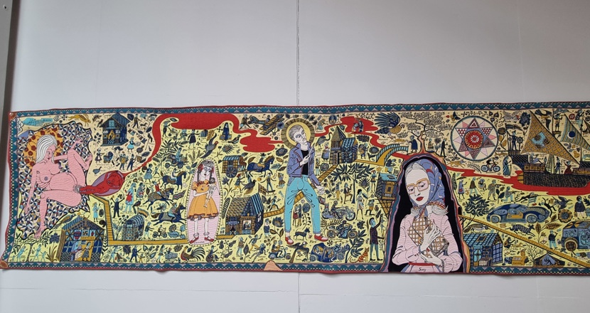 Men där fanns så mycket mer till exempel Grayson Perrys många meter långa väv/broderi ”Walthamstow-tapeten”.