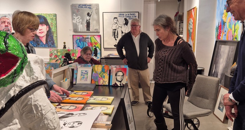 Blött och regnigt var det men inne på Galleri Scandinavia blev vi varmt välkomnade av Lindblom senior som visade och berättade om några konstnärer som nu är i ropet. De 13 deltagarna valde efter lite diskussion ut två tavlor att ha med på konstlotteriet som är den 27 mars. Efter galleribesöket blev det mysigt häng och kvällsfika!