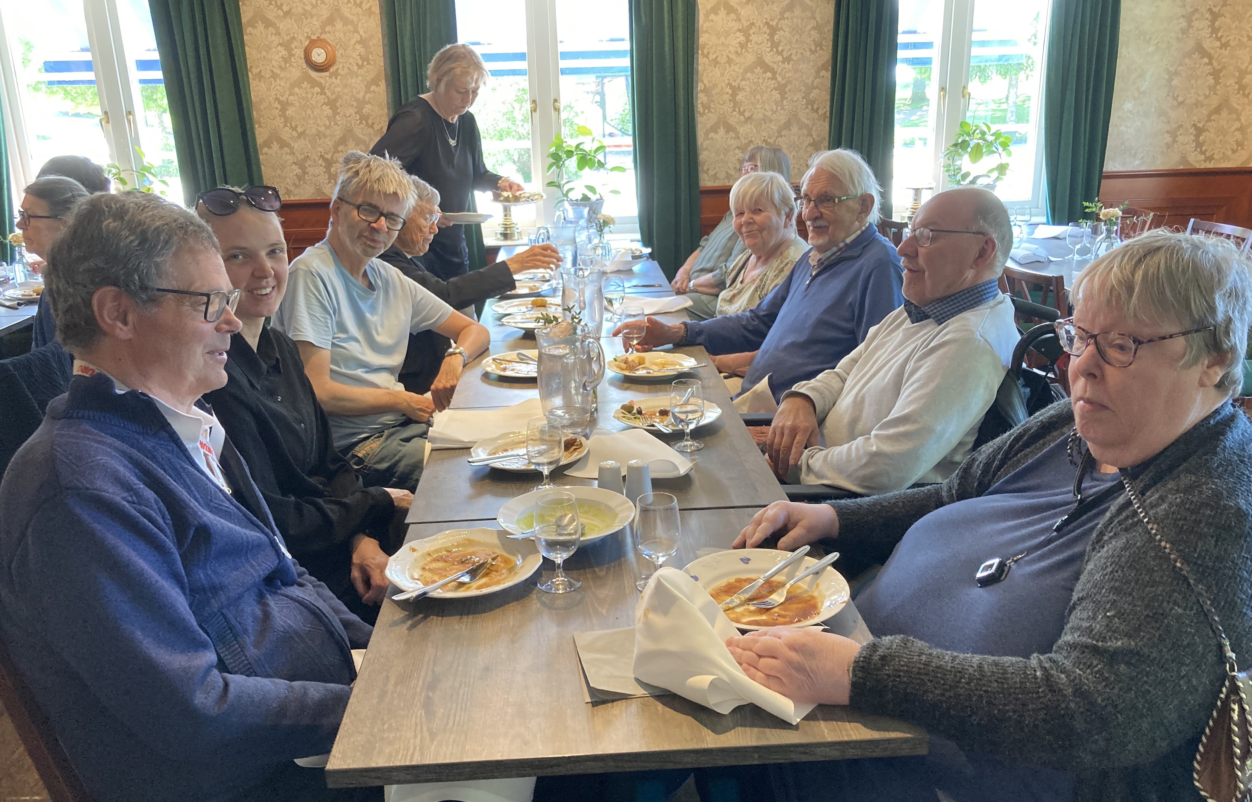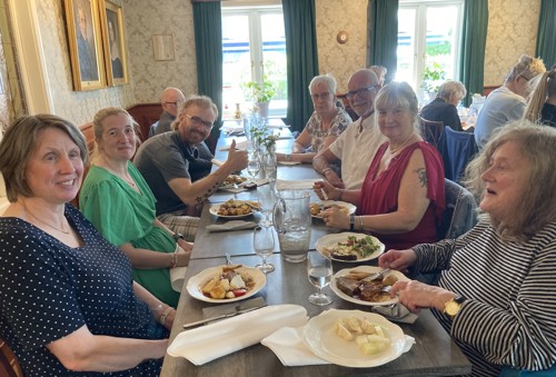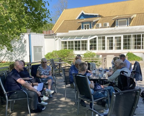 Det blev en god lunch samt efterföljande kaffe och musikquiz på uteplatsen i de idylliska omgivningarna runt den anrika gästgivargården vid Bjärehalvön nära Hallandsåsen.