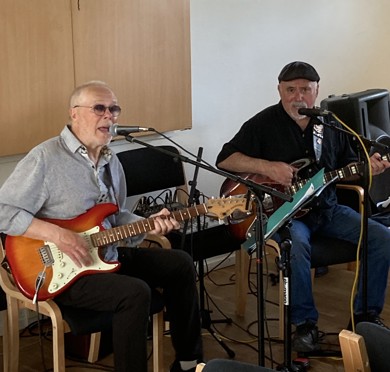 Utöver klassisk midsommarmeny – med nypotatis och sill följt av fika med gräddtårta och kaffe – stod duon Keps för musikunderhållningen, där gamla godingar framfördes med spänst och elegans.