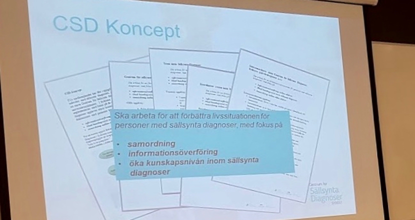 Avslutningsvis berättade Åsa Lundin, länskoordinator för CSD Sydöst, som omfattar Region Jönköping, Landstinget Kalmar län samt Region Östergötland, att CSD är i första hand en stödjande enhet för patienter med sällsynta diagnoser och deras anhöriga. Man räknar med att det finns mellan 6.000 och 8.000 olika sällsynta diagnoser.