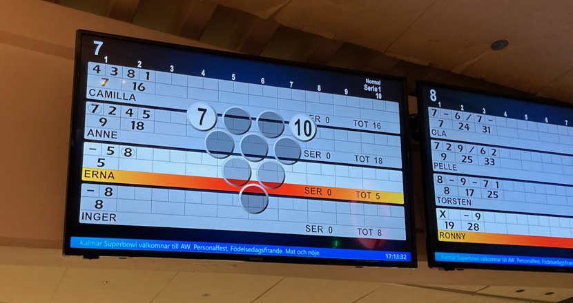 Vi är inga proffs precis, många klot i rännan och många hål bland käglorna men vad gör väl det när glada skratt klingar mellan fullträffarna och missarna.