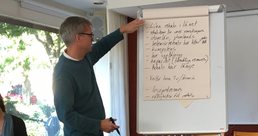 Håkan berättar övergripande om rehabiliteringens uppdrag och vilka resurser och personalkategorier som finns att tillgå.