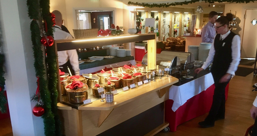 Sist men inte minst ett dignande dessertbord med självklarheter som ostkaka och ris à la Malta men även härligheter såsom pepparkakstiramisu, cheesecake med glögggele, hallon och lakritsparfait.
