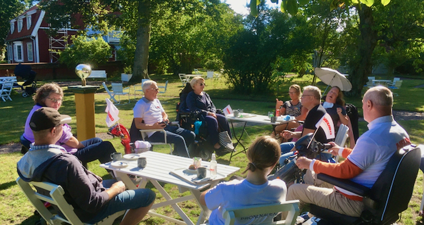 Efter promenad blev det en gemensam fika i mysiga trädgården på Krusenstiernska.