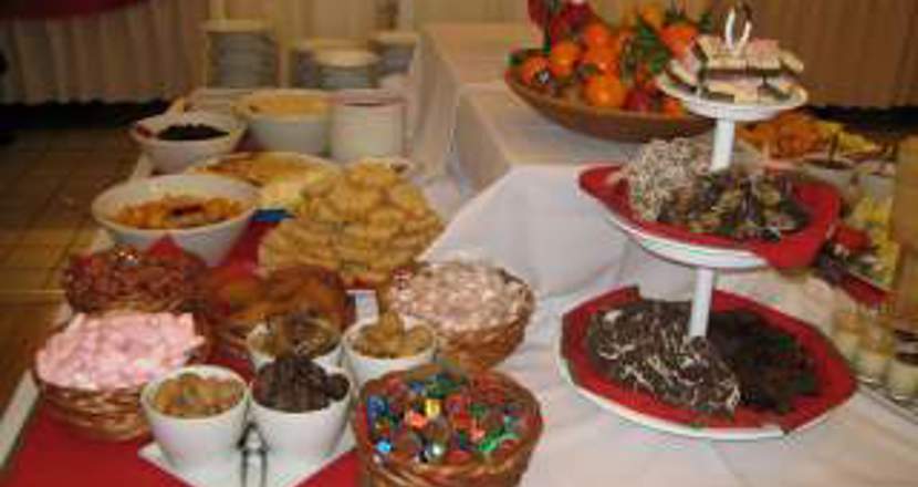 frestelse, köttbullar, prinskorv, honungsglaserade revben, omelett med svampstuvning, lutfisk, kål av olika slag och mycket, mycket mer!