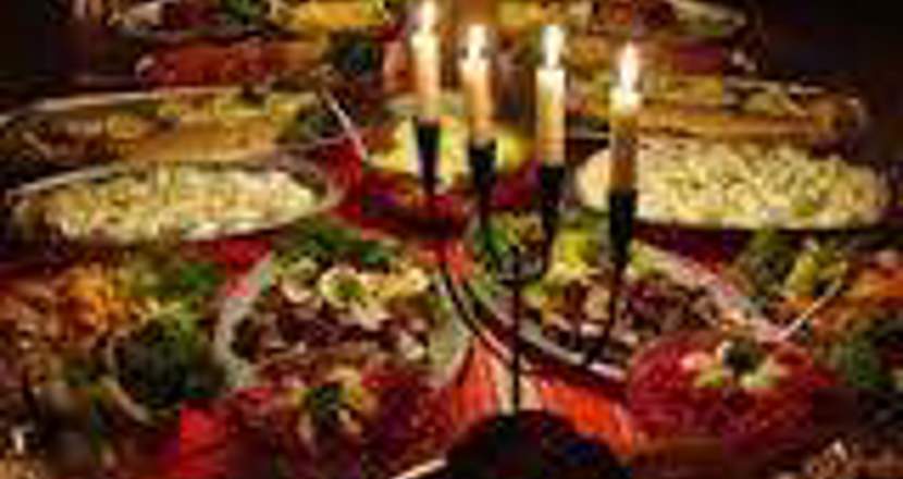 frestelse, köttbullar, prinskorv, honungsglaserade revben, omelett med svampstuvning, lutfisk, kål av olika slag och mycket, mycket mer!