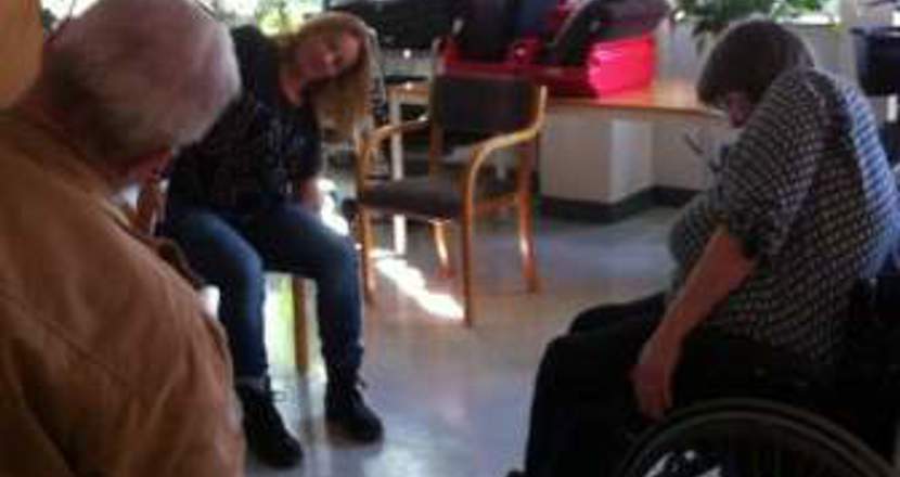 En dag full av aktiviteter på Karlskoga lasarett. Uppvisning av Yoga, trappklättrare, assistanshund med mera.